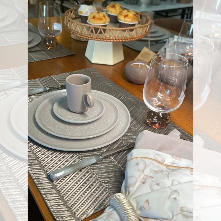 Sim! Nossa linha de mesa posta é completa, com louças, talheres, copos, taças, guardanapos e detalhes que transformam cada refeição em uma experiência charmosa e especial.